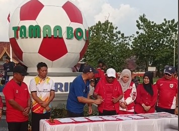 Lapangan yang berdiri diatas lahan dari hibah masyarakat kepada Pemkab Pelalawan yang kemudian di bangun melalui dana Corporate Social Responsibility (CSR) PT. RAPP telah diserah terimakan kepada Pemerintah daerah melalui Dinas Pemuda dan Olahraga (Dispora) Pelalawan yang kemudian dikelola oleh pihak ketiga tanpa ada nya MoU yang jelas.