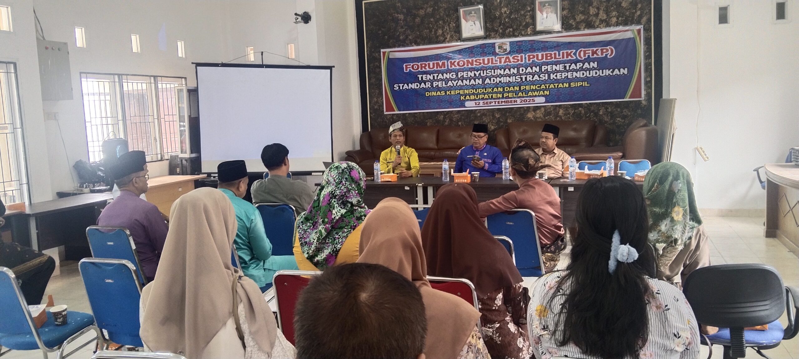 RIAU (LK) – Guna meningkatkan kualitas layanan publik bidang administrasi melalui partisipasi aktif masyarakat, Dinas Kependudukan dan Pencatatan Sipul (Disdukcapil) Kabupaten Pelalawan menggelar Forum Konsultasi Publik bersama berbagai unsur masyarakat, Jumat (12/9) di Aula Dinas Pemberdayaan Masyarakat Desa (DPMD).
